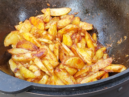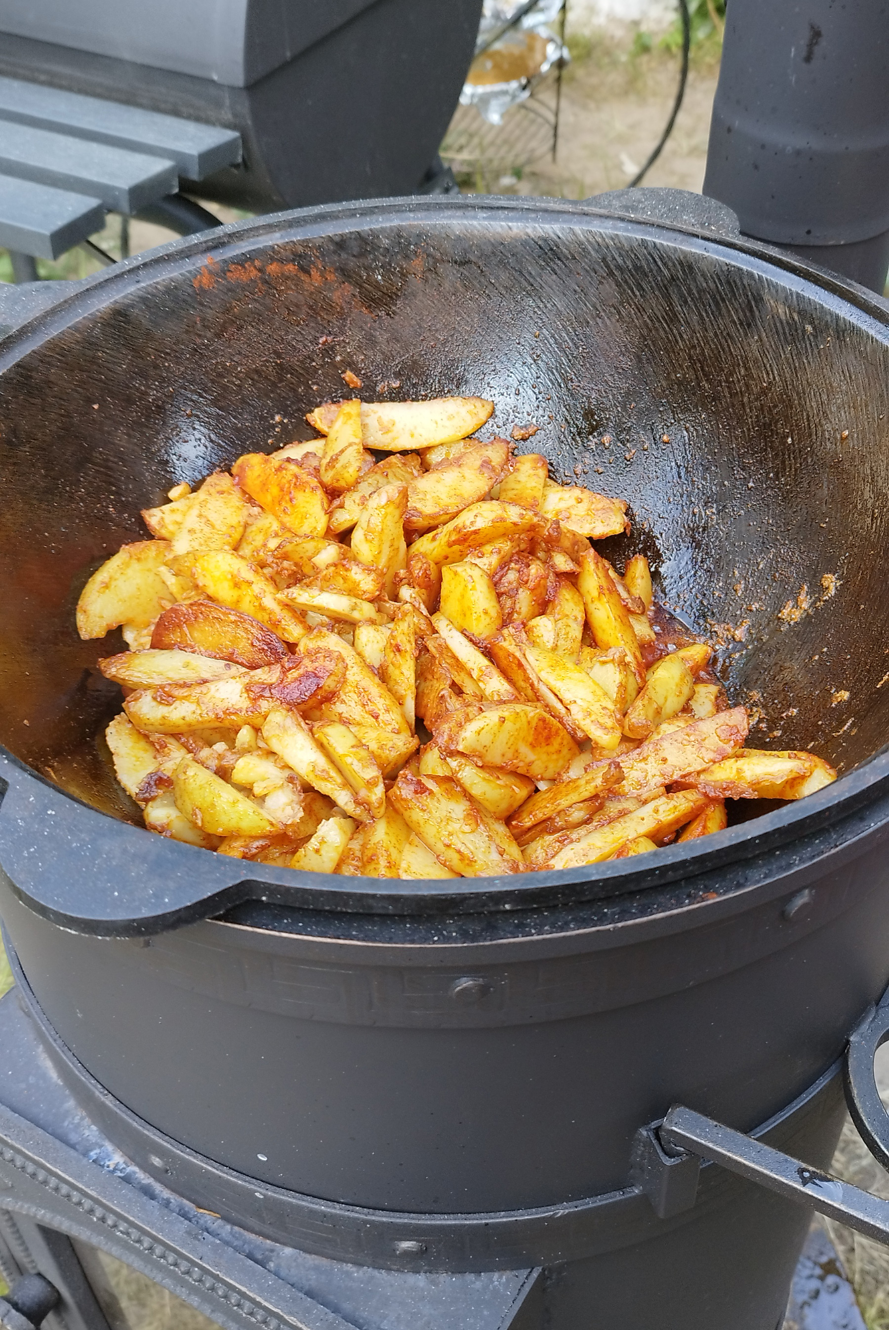 Жарим картофель, солим, добавляем копчёную паприку. Доводим до готовности и убираем.
