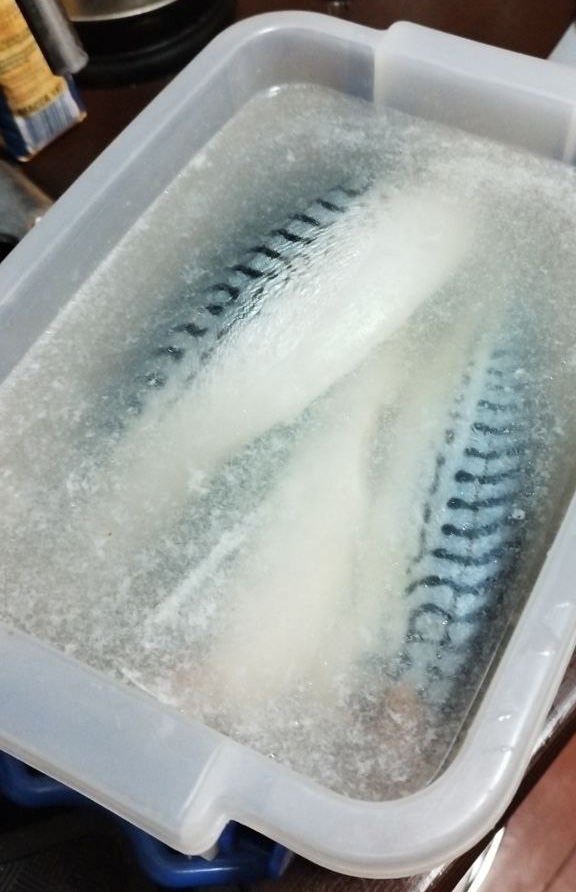 Готовим маринад: на 1 литр воды 2 ст. ложки соли и 1 лимон (выдавливаем сок). Все перемешиваем и заливаем рыбу. Маринад должен покрыть тушки. Отправляем в холодильник на 8-12 часов.