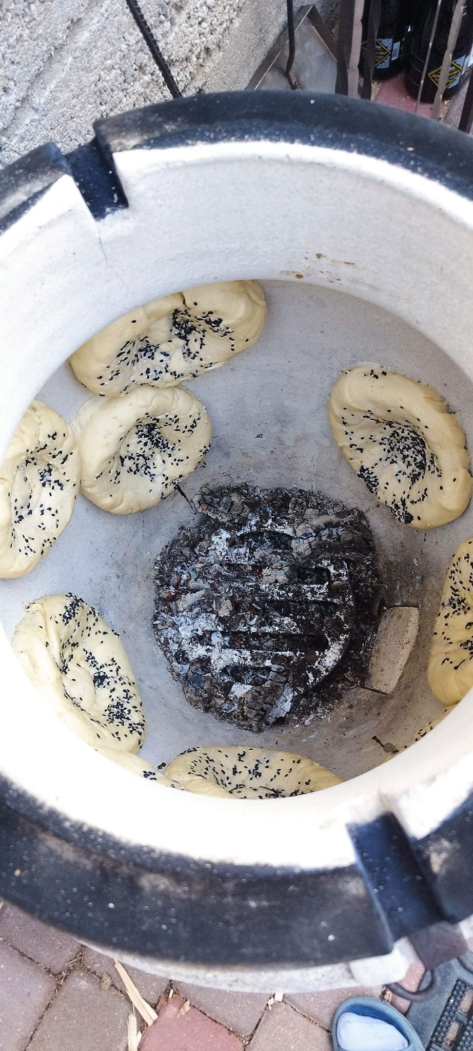Смешиваем кунжут с молоком и смазываем верх лепешек кисточкой.
