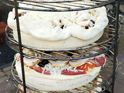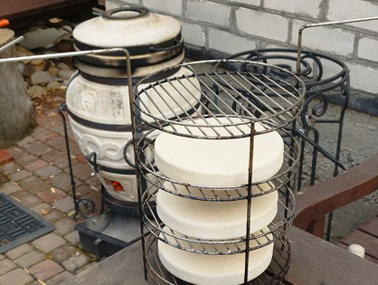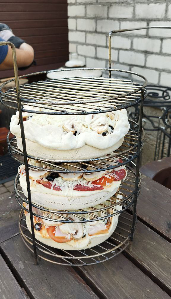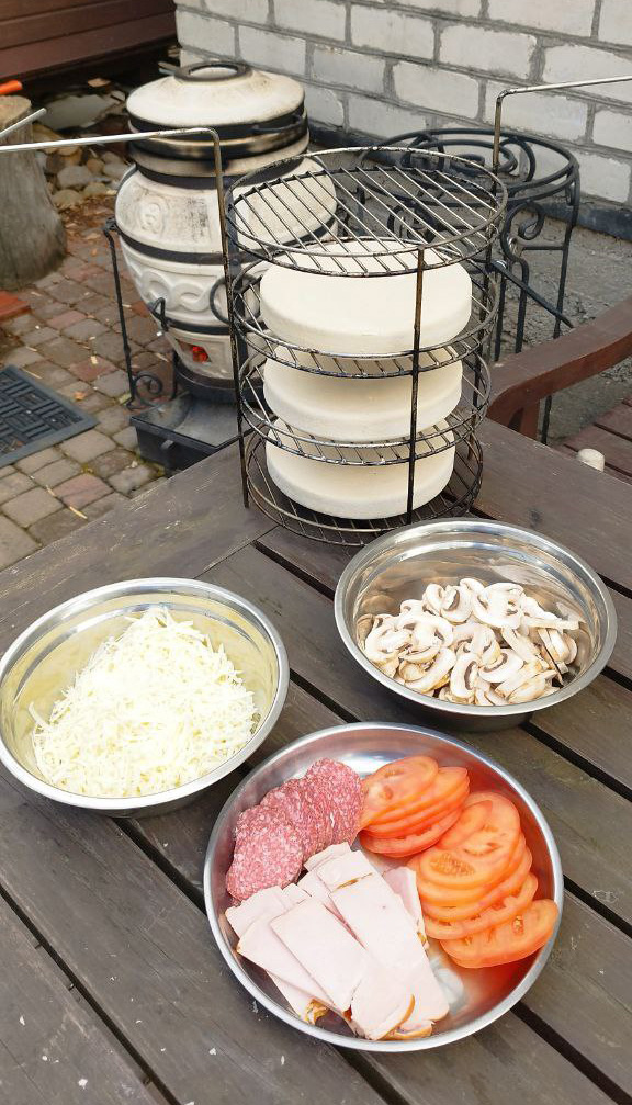 Через час опускаем камни для пиццы в тандыр на 30 минут и идем делать заготовки.